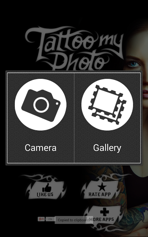 Crop photo you can crop free style and other 1:1 4:3 etc option available. Tattoo my photo lets you try new tattoo designs, without any pain! Tattoo my photo is a whole new virtual body modification app. Select a photo from your gallery. Tattoo my photo is tattoo maker app, easy to use and look realistic tattoo on your body, come with variety of beautiful realistic 100+ tattoos, so lets start and make your body more attractive with tattoo.